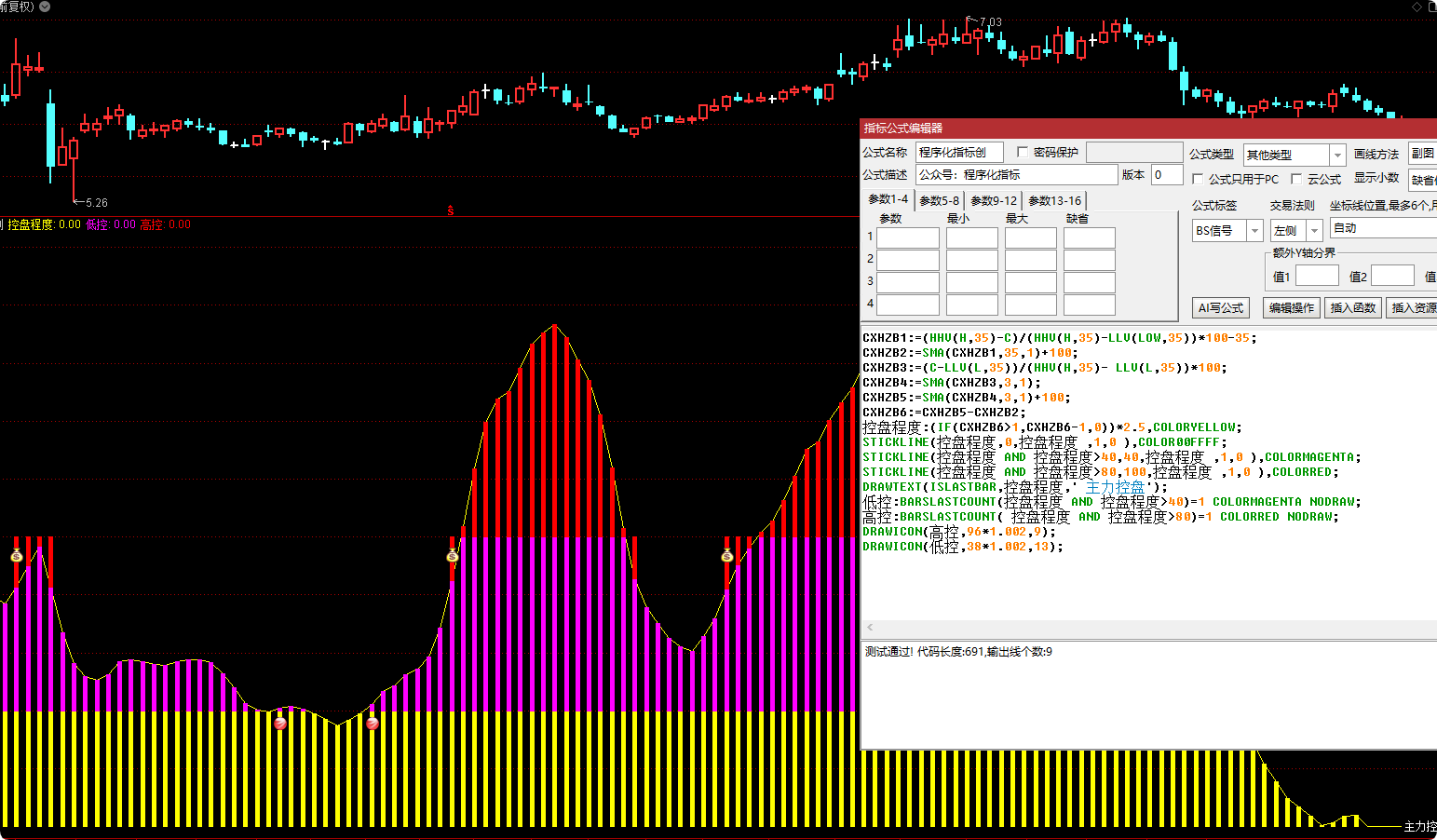 低控:BARSLASTCOUNT(控盘程度 AND 控盘程度>40)=1 COLORMAGENTA NODRAW;