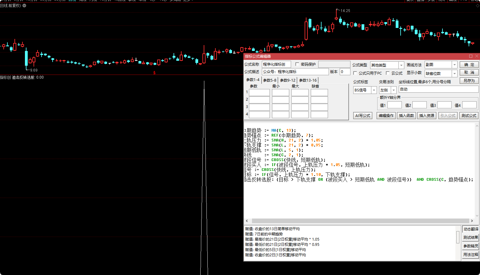 上轨压力 := SMA(H, 21, 2) * 1.05;
