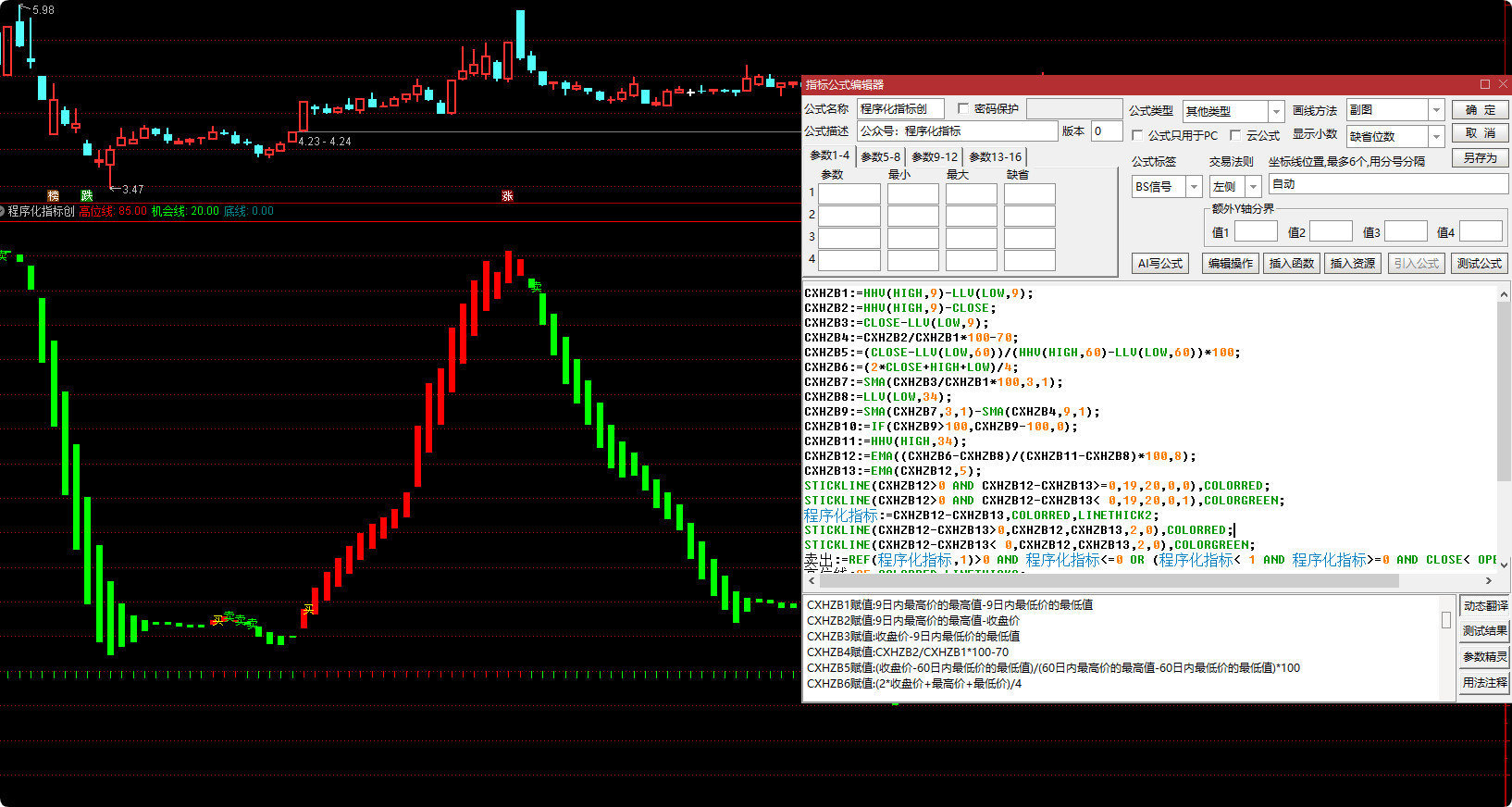 程序化指标:=CXHZB12-CXHZB13,COLORRED,LINETHICK2;