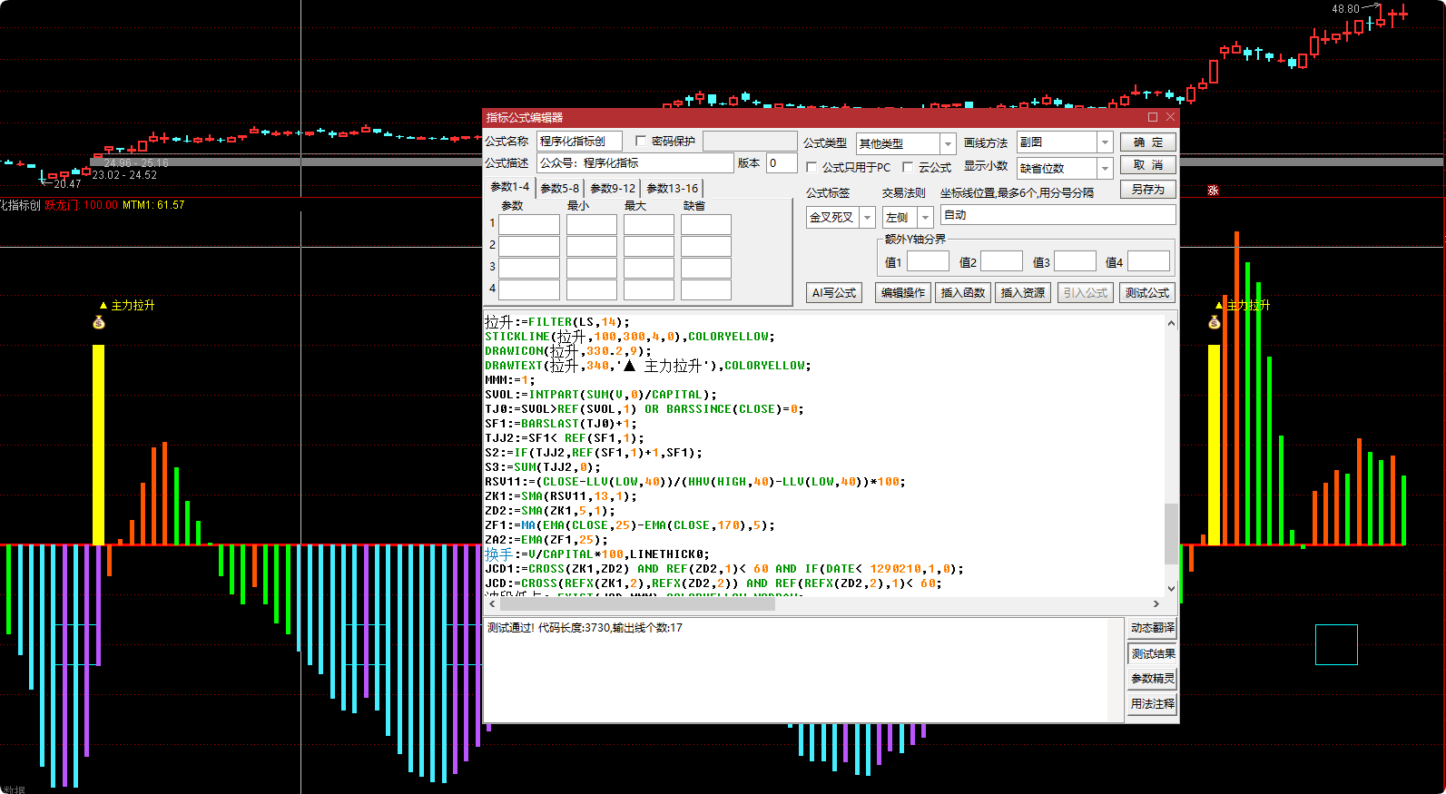 DRAWTEXT(拉升,340,'▲ 主力拉升'),COLORYELLOW;