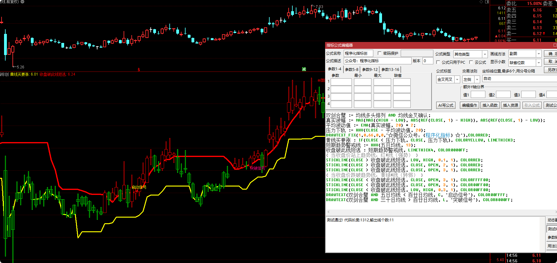 DRAWTEXT_FIX(1,0.66,0,0,'☆微信公众号:(程序化指标) ☆'),COLORRED;