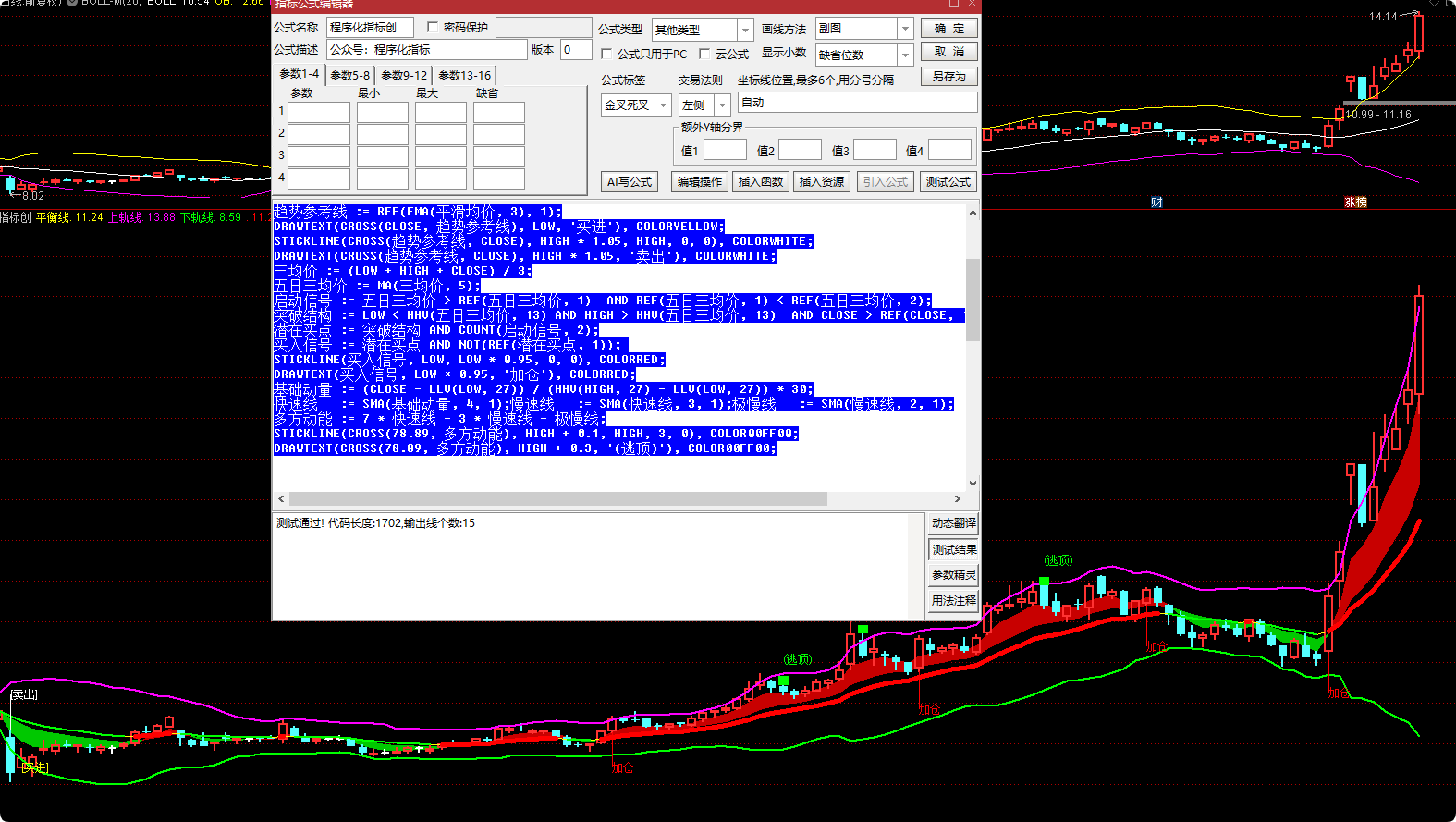 上轨线 :平衡线 + 2 * STD(CLOSE, 20), LINETHICK2, COLORMAGENTA;