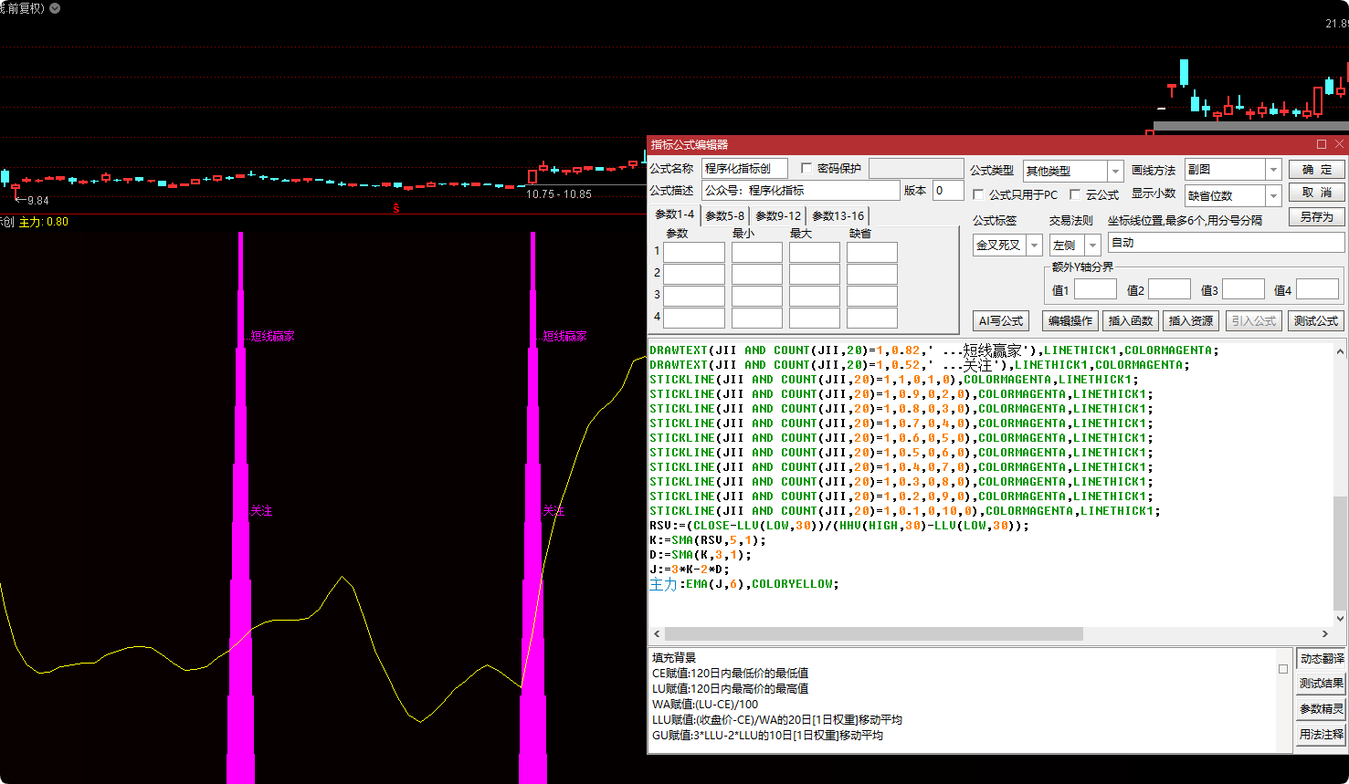 DRAWTEXT(JII AND COUNT(JII,20)=1,0.52,' ...关注'),LINETHICK1,COLORMAGENTA;