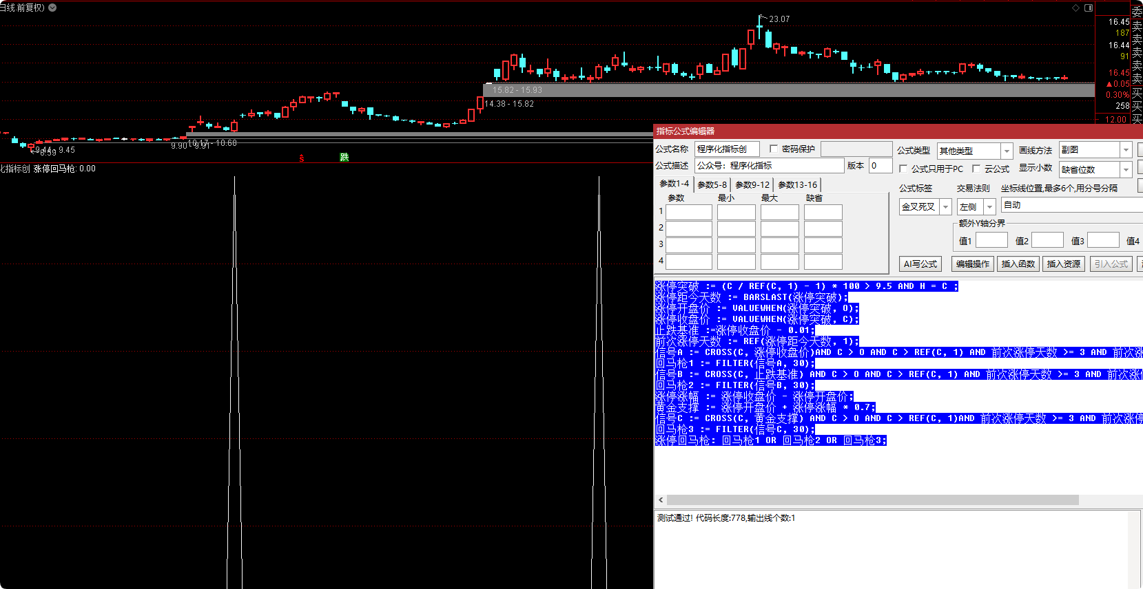 信号C := CROSS(C, 黄金支撑) AND C > O AND C > REF(C, 1)AND 前次涨停天数 >= 3 AND 前次涨停天数 <= 10;