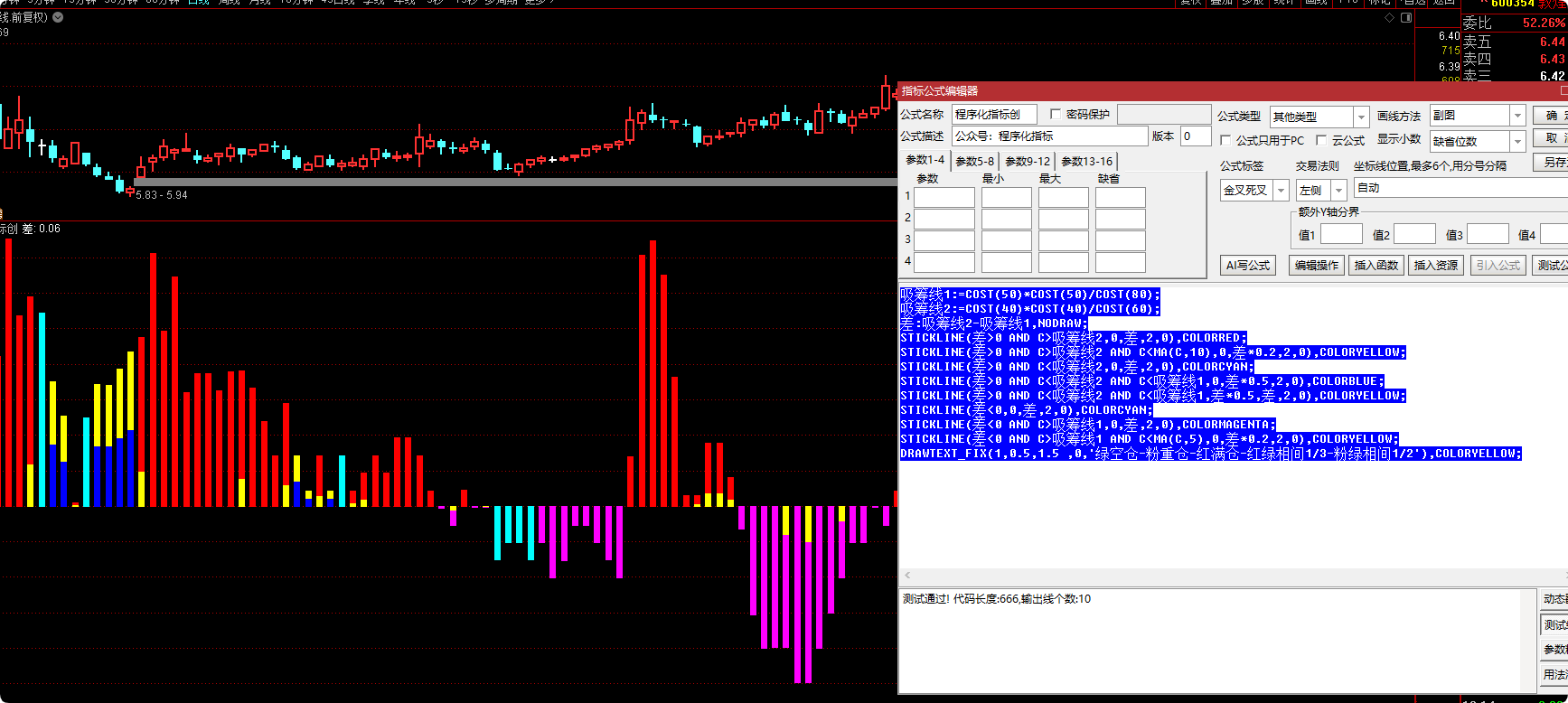 STICKLINE(差>0 AND C<吸筹线2 AND C<吸筹线1,0,差*0.5,2,0),COLORBLUE;