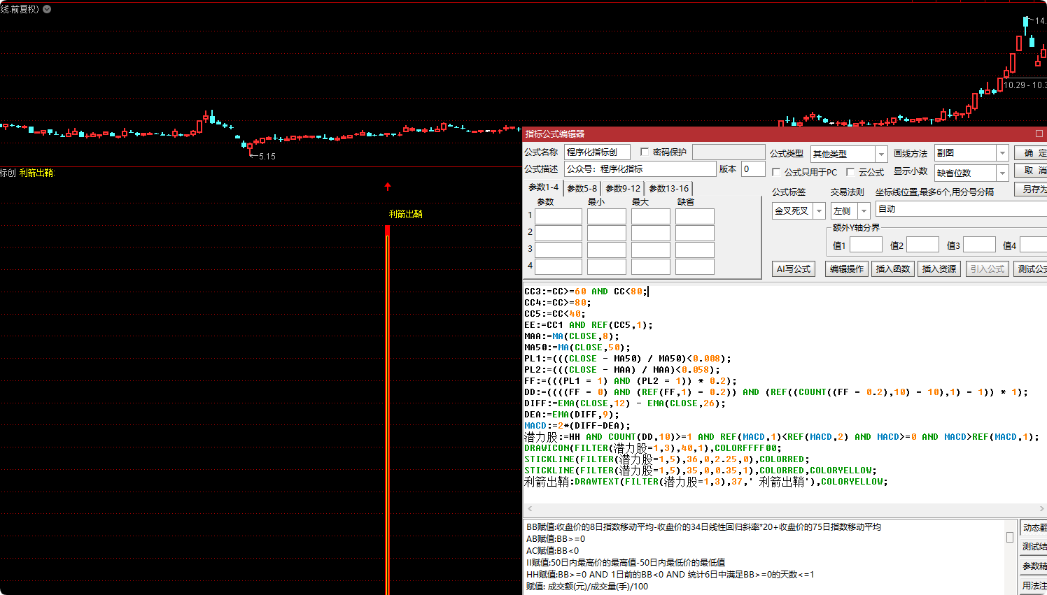 利箭出鞘:DRAWTEXT(FILTER(潜力股=1,3),37,' 利箭出鞘'),COLORYELLOW;