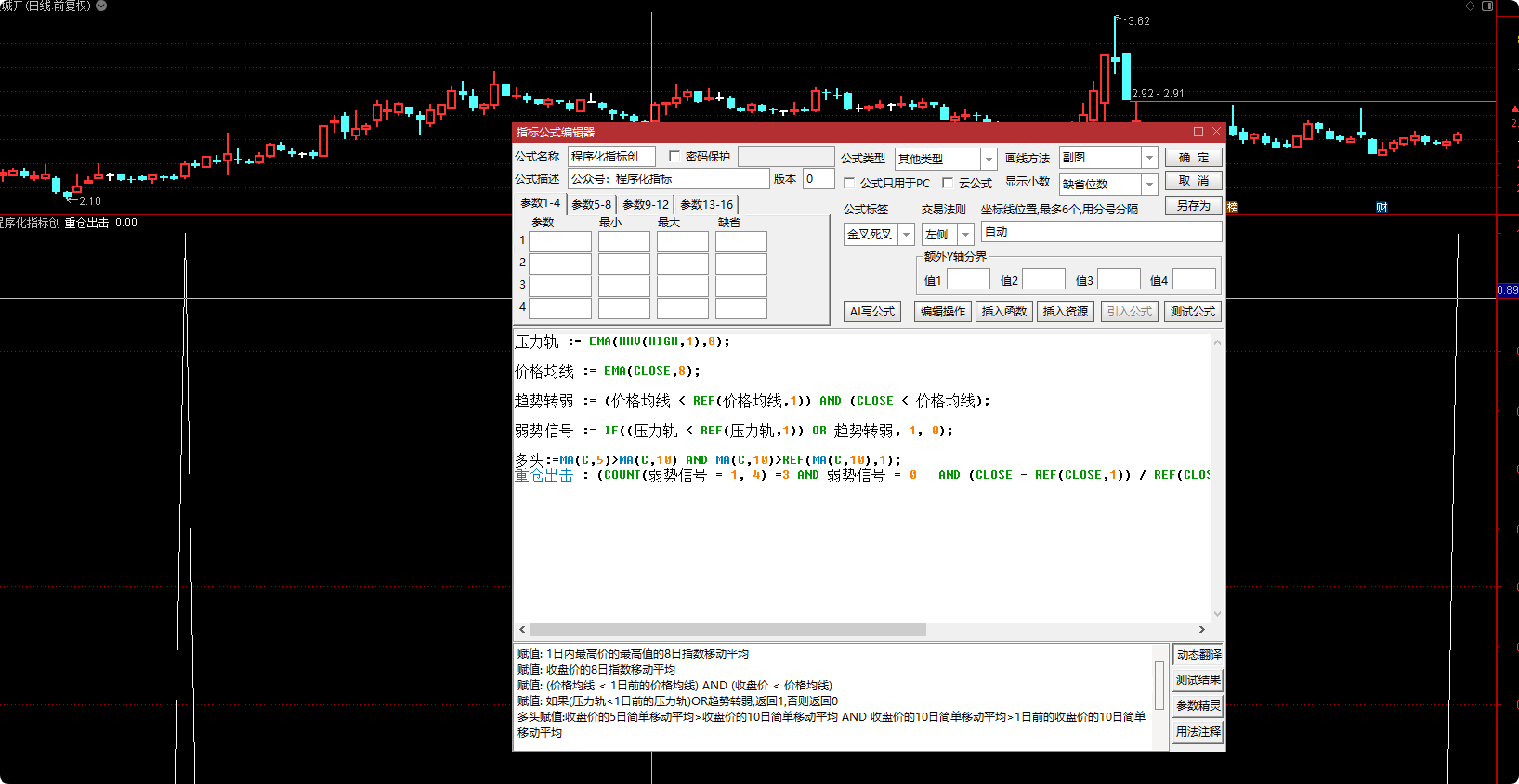 弱势信号 := IF((压力轨 < REF(压力轨,1)) OR 趋势转弱, 1, 0);