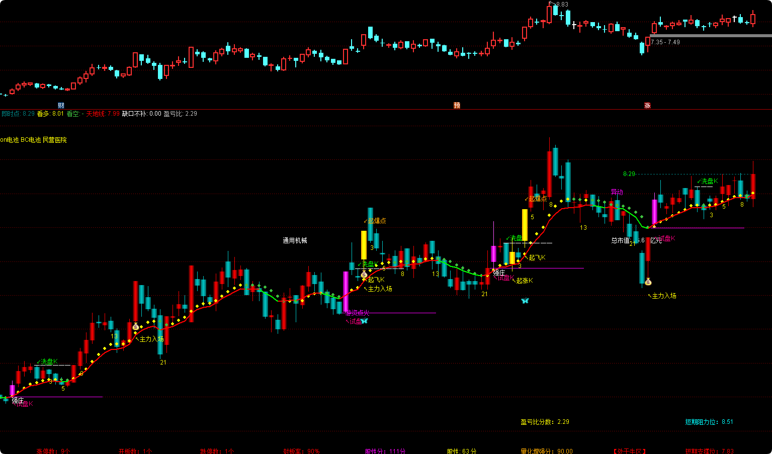 涨停股性:=STRCAT(STRCAT('股性: ',CON2STR((ZCPD),0)),' 分');
